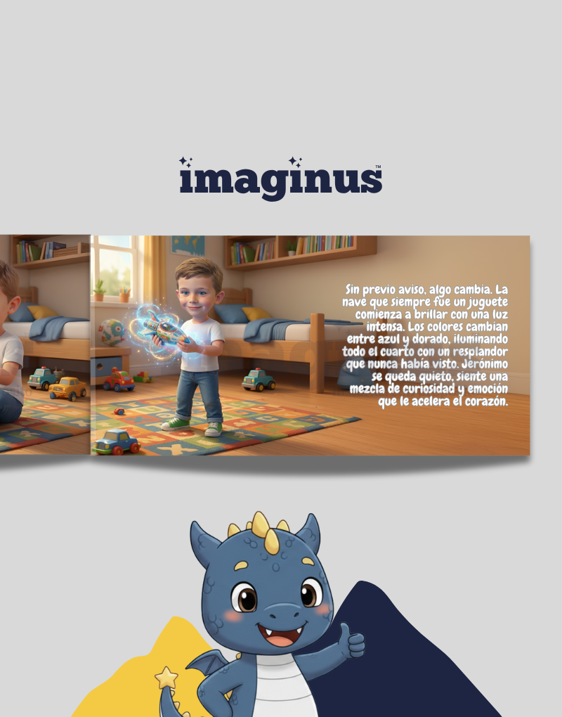 Olvídate de los cuentos de siempre. Este el regalo que convierte la hora de dormir en una plataforma de lanzamiento. Esta aventura comienza cuando la curiosidad de tu hijo(a) y su nave de juguete favorita se fusionan, abriendo un portal a la inmensidad del cosmos.